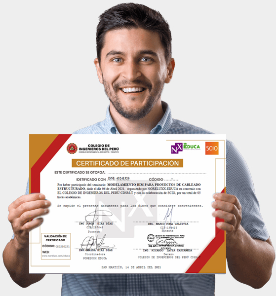 - CERTIFICADO VALIDADO Y RESPADADO POR POR EL COLEGIO DE INGENIEROS POR 100 HORAS ACADÉMICAS (Incluye nota de aprobación) como : EXPERTO EN CABLEADO ESTRUCTURADO (COBRE Y FIBRA),la cual validara tu conocimiento a nivel nacional, validado por nuestro instructor y el Decano.